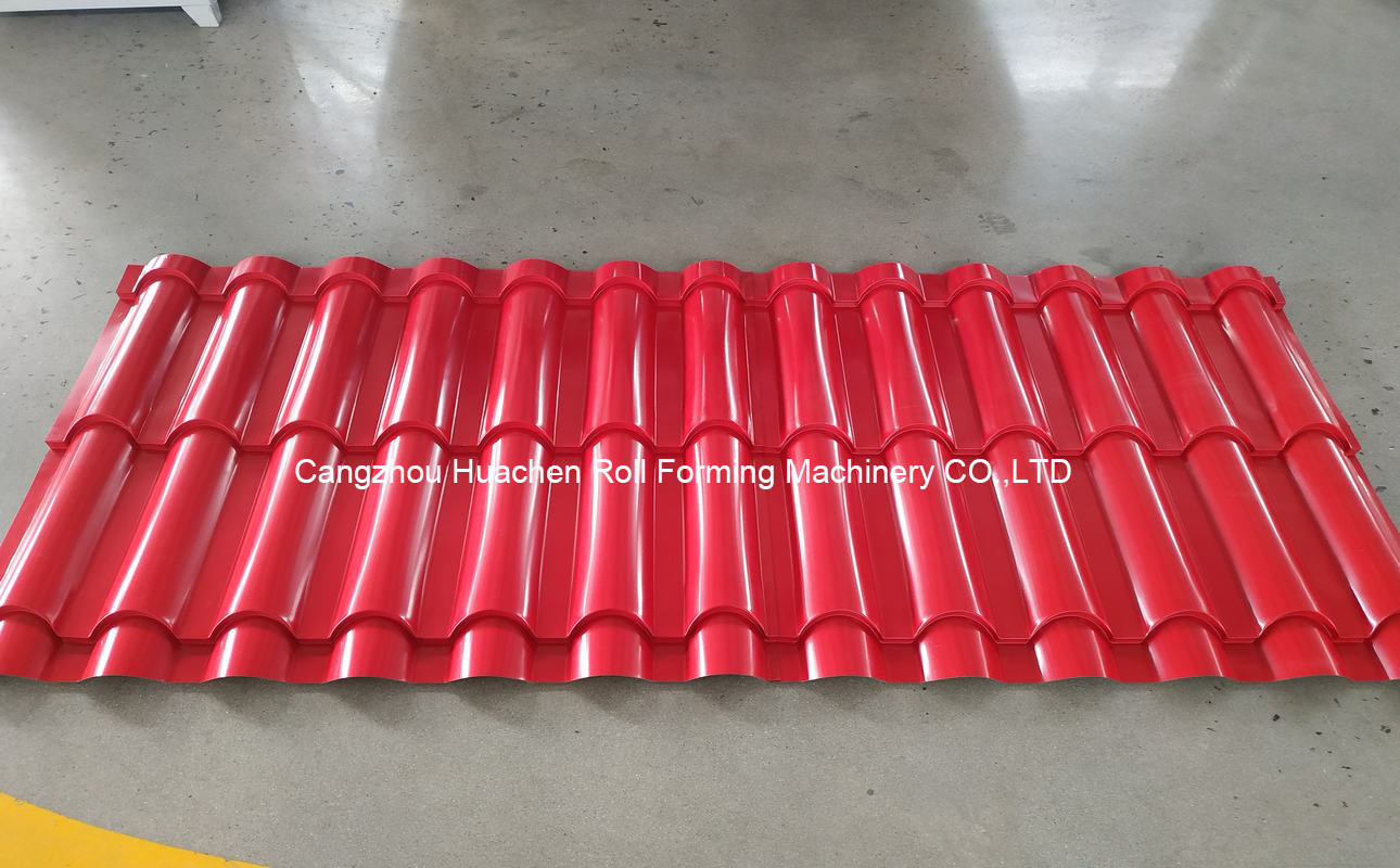 Το πιάτο χάλυβα χρώματος που παράγεται από τον Τύπο κεραμιδιών χάλυβα χρώματος χρησιμοποιείται ευρέως στην κατασκευή των οικιακών συσκευών και των βιομηχανιών μεταφορών. Για τη Οικοδομική Βιομηχανία, χρησιμοποιείται κυρίως για τον τοίχο στεγών και την πόρτα των βιομηχανικών και εμπορικών κτηρίων όπως τα εργαστήρια δομών χάλυβα, οι αερολιμένες, οι αποθήκες εμπορευμάτων, και τα παγωμένα κτήρια. Τα πλεονεκτήματα του πιάτου χάλυβα χρώματος είναι καλή αντίσταση διάβρωσης, φωτεινά χρώματα, όμορφη εμφάνιση, κατάλληλη επεξεργασία και διαμόρφωση, και χαμηλότερο κόστος. Χαρακτηρίζει 1: η κατευθυντική μεγάλη υψηλή ποιότητα τέσσερις-στηλών φόρμα-που αποτυπώθηκε σε ανάγλυφο χρωμάτισε τον εξοπλισμό κεραμιδιών: υιοθετώντας διάφορες προηγμένες τεχνολογίες, η κύρια μηχανή «σώμα» είναι ενωμένη στενά χωρίς συγκόλληση, οι οποίες αποτελούνται από το «χυτοχάλυβα», έτσι ολόκληρη η μηχανή δεν θα προκαλέσει την παραμόρφωση «κύριων μηχανών» λόγω «της πίεσης» που παράγεται από «τη συγκόλληση». Ο οικοδεσπότης «κύλινδρος πίεσης και η κύρια φόρμα» από το «μανίκι οδηγών» που δεσμεύει 120 στερεό οδηγό ρίζας στηριγμάτων χιλ. «τέσσερα στον υδραυλικό», «κύριο κεραμίδι που η πρότυπη» κατακόρυφος δημιουργεί και κατεβάζει, δεν θα παραγάγει την κάθετη απόκλιση, ειδικά για την ευπάθεια του προτύπου, η απόλυτη προστασία, συγχρόνως επίσης πολύ να επεκτείνει τη ζωή υπηρεσιών του «κύριου προτύπου κεραμιδιών».