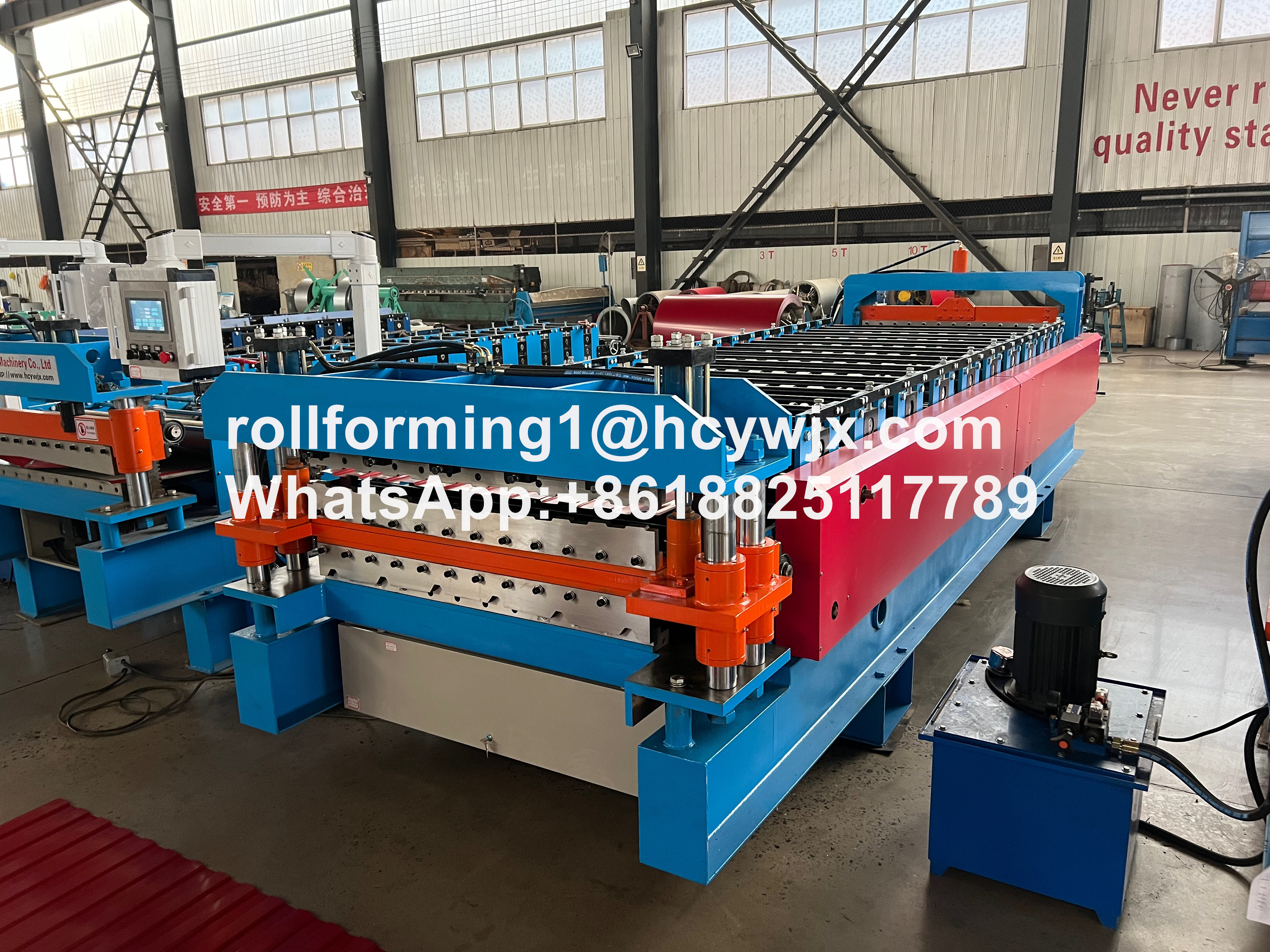Η μηχανή σχηματισμού κυλίνδρων διπλού στρώματος έχει σχεδιαστεί για την παραγωγή δύο διαφορετικών τύπων φύλλων στέγης με διαφορετικό πλάτος και μήκος.Είναι εξοπλισμένο με δύο σύνολα κυλίνδρων που μπορούν να ρυθμίζονται ανεξάρτητα για να σχηματίσουν το επιθυμητό προφίλ και το σχήμα των φύλλωνΤο μηχάνημα είναι κατασκευασμένο από υλικά υψηλής ποιότητας και εξαρτήματα που εξασφαλίζουν την αντοχή και την αξιοπιστία του.